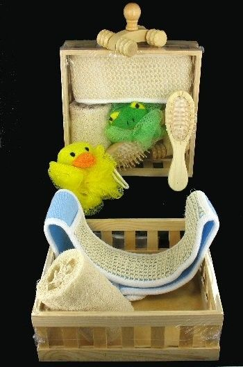 Beautiful bath set in wooden box.