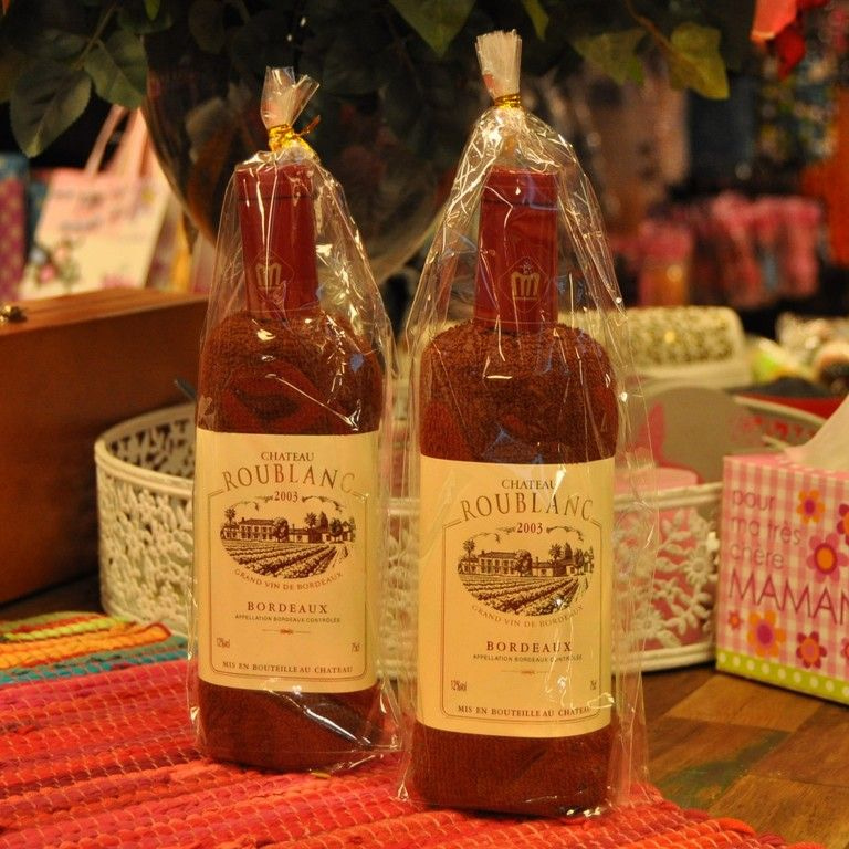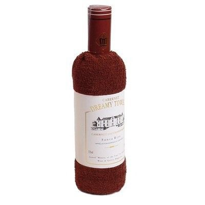 Nice gift article, you've probably never seen. A towel beautifully rolled up in the shape of a wine bottle. The label is even around.