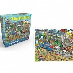 That's Life Puzzle - Train Station, 1000 pieces. Discover what the people experience at the train station! Goliath's life puzzles show the best chaotic images in the middle of life.