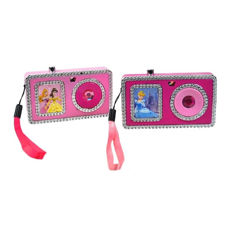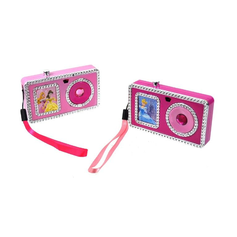 Stylish princesses camera with bling bling stones. Look through the camera, click the button and enjoy the slideshow.