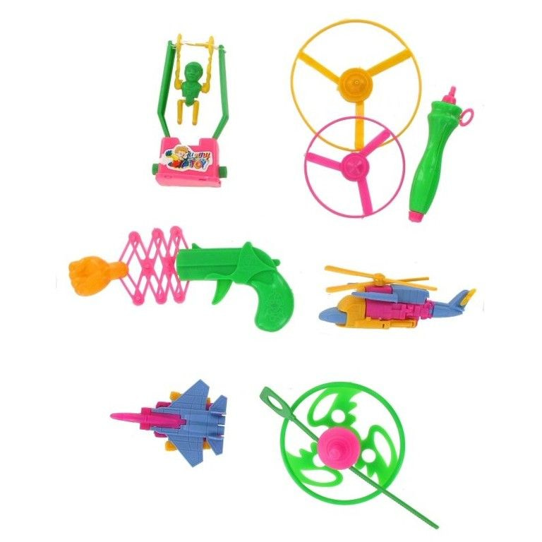 Mix grab bag items: including Flying Saucers, boxing gun etc. Nice variation for entertaining children.