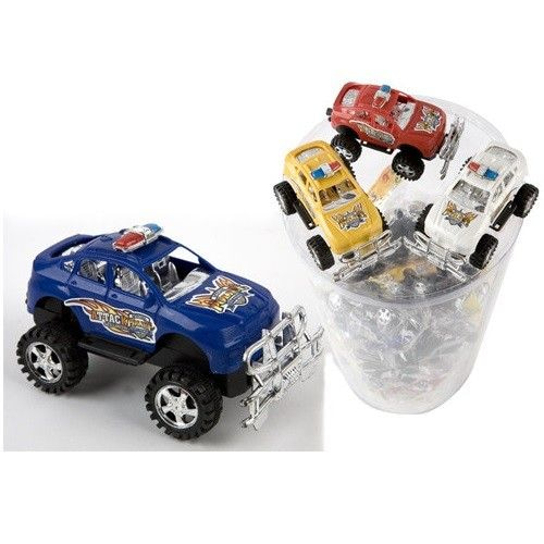 Rugged police truck with a pull rope. Pull the rope and let it go. The car now rides meters ahead.