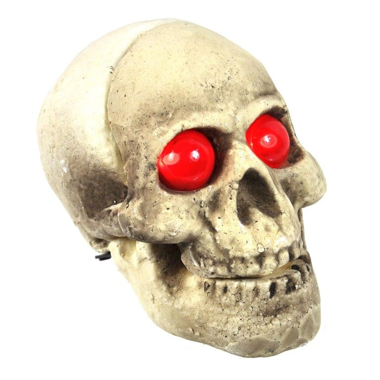 A super scary skull features luminous red eyes. Super nice decoration for Halloween, carnival or theme parties.