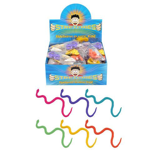 Very funny this pull-out strech snakes. Take the hose between your two fingers and make it as long as possible. Packaged in a nice display.