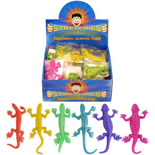 Very funny these pull-out strech lizards. Take the lizard between your two fingers and make it as long as possible. Packaged in a nice display.