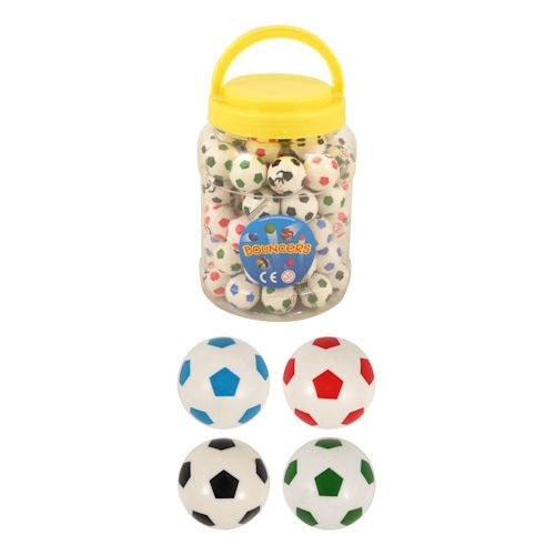 Beautiful Football Bouncing balls with a diameter of 3.5 cm. Comes in a nice pot with lid.