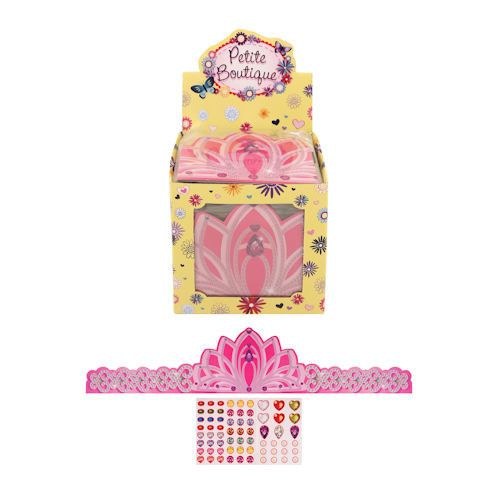 Adjustable cardboard Princes crown. Also provided with a sticker sheet to make your princesses crown even more beautiful. comes in a beautiful Display.