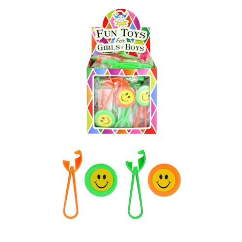 Cheerful colored smiley disc shooters, put the disc in it and shoot him far away. comes in Mix colors in a beautiful Display.