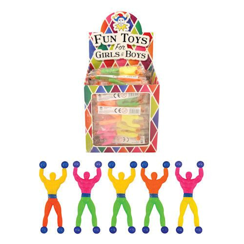 Wall Walkers. What a funny dolls are these. Throw them against the wall, and they slowly tumble down. Just like Spiderman! Comes in Mix colors in a beautiful Display.