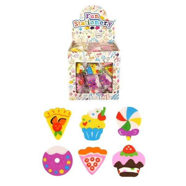 Very nice Sweet candy erasers, are delivered in mix shapes including ice cream, loley, pizza point, donut, pastry etc. Packed in a beautiful Display.