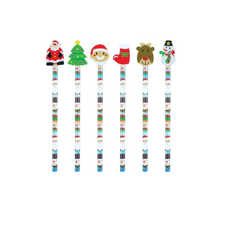 Cute Christmas pencils, with a Christmas figure eraser on the top. Will be supplied with mix Christmas figure erasers.