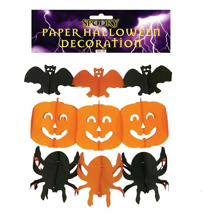 Beautiful paper Halloween garlands of 300 CM. Long. Are delivered in 3 mix versions: Pumping pendulum, Spinning pendulum and Bat pendulum.