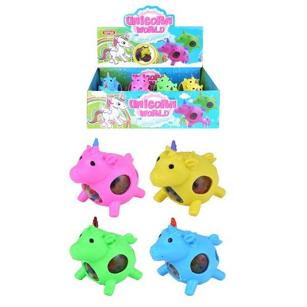 Nice Squishy ball in the shape of a Unicorn, which you can pinch nicely into. Packed with Multi Color colors in a display.