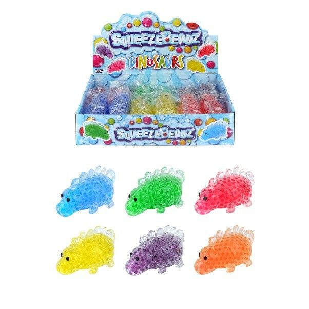Nice Squishy ball in the shape of a dinosaur, where you can squeeze. Packed with Multi Color colors in a display.