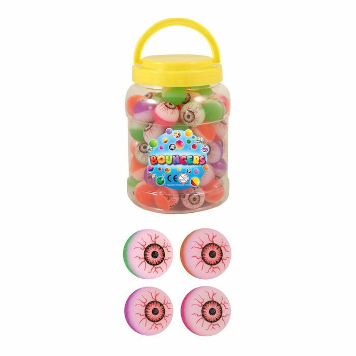 Beautiful Stuiterballen with eyes with a diameter of 3.3 cm. Comes in a nice jar with lid.