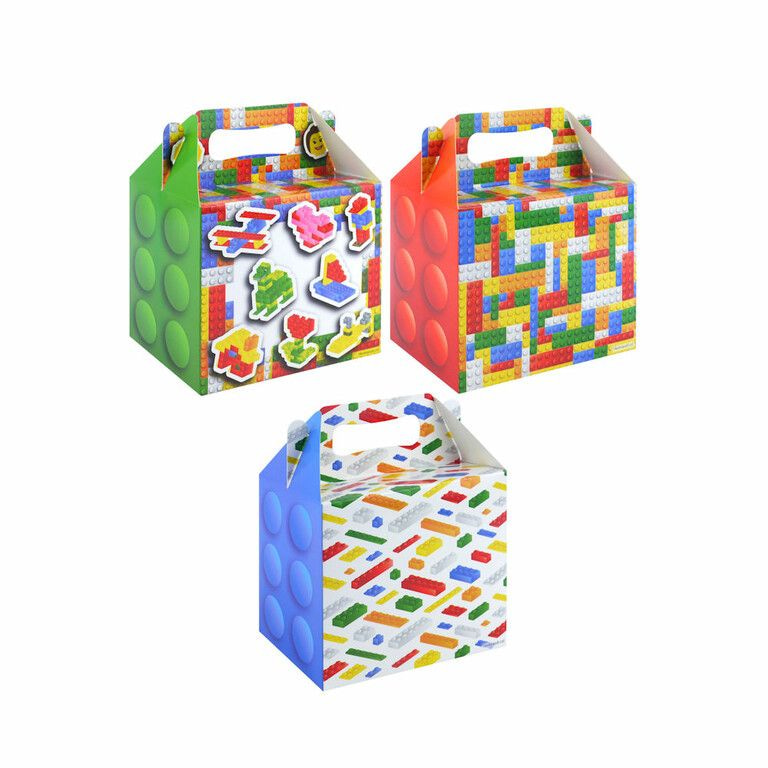 Menu box with the theme: Building blocks. Dimensions 14 x 9.5 x 18 Cm. Comes in an assortment of building block motifs.