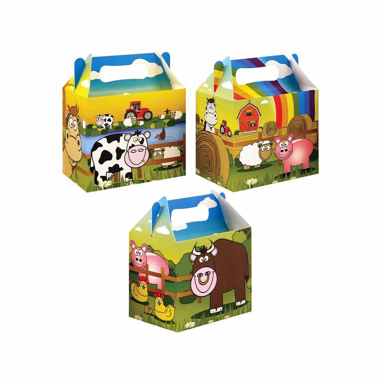 Menu box with the theme: Farm. Dimensions 14 x 9.5 x 18 Cm. Delivered in assorted types of farm.
