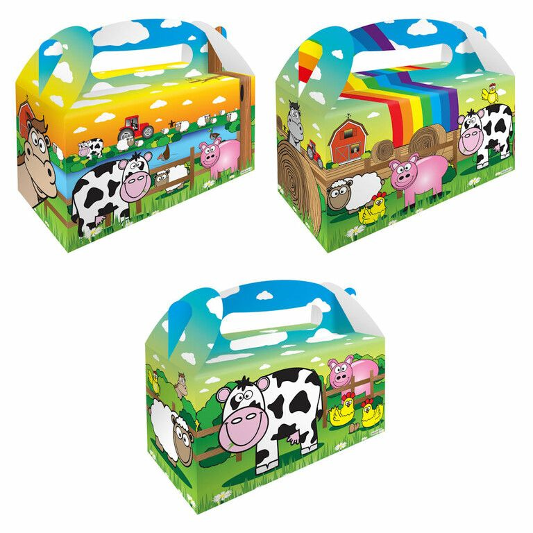 Menu box with the theme: Farm. Dimensions 22.5 x 9.5 x 18 Cm. Comes in an assortment of farm motifs.