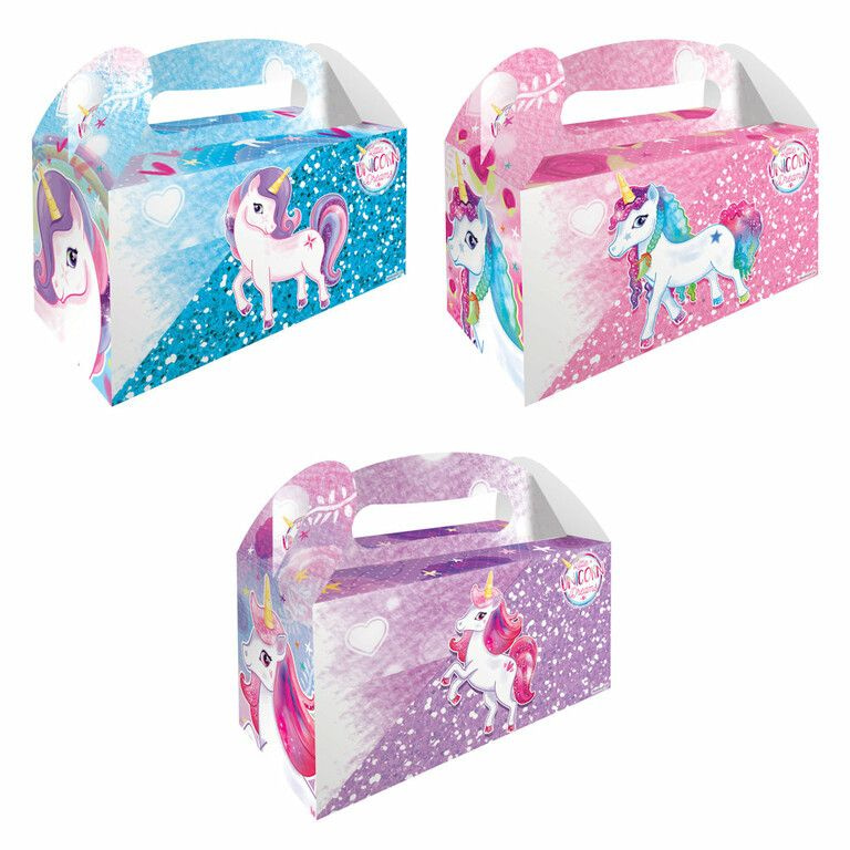 Menu box with the theme: Unicorn / Unicorn. Dimensions 22.5 x 9.5 x 18 Cm. Comes in an assortment of unicorns.