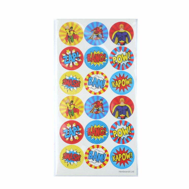Fun Stickers, Model: Superhelden. Afmetingen stickervel: 9 x 18 Cm. Elk stickervel bevat 18 stickers.