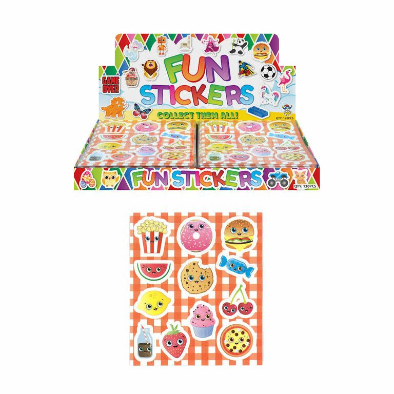 Fun Stickers, Model: Food Face's. Afmetingen stickervel: 10 x 11.5 Cm. Wordt geleverd in een mooie display.