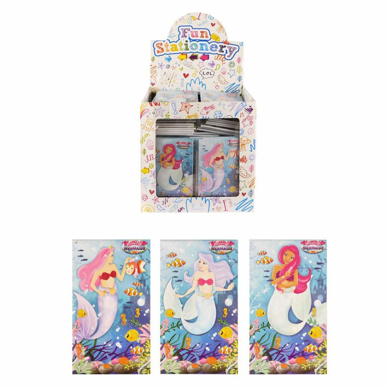 Leuke kleine Notieblokjes / Tekenboekjes Model: Mermaid / Zeemeermin. Wordt in Mix soorten geleverd in een mooie Display.
