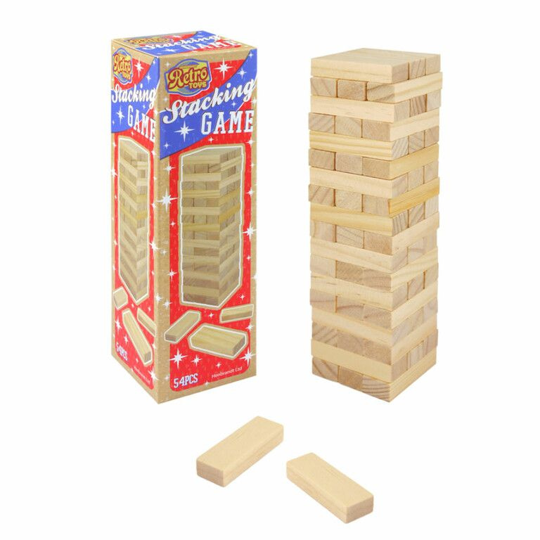 Retro Game, Houten Stapeltoren spel. Stapel voorzichtig de blokjes om zo een toren te maken. Het spel bevat 54 blokjes stapelblokjes, met een grootte van 5.2 x 1.6x 0.5 cm per stapelblokje.