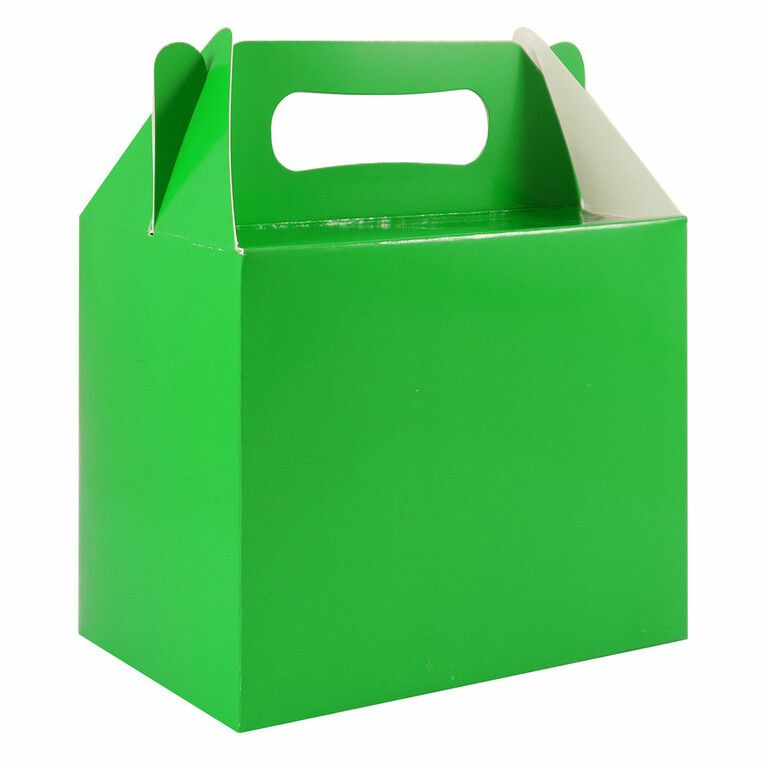Fun treat/giveaway boxes. Color: Green. Dimensions: 14 x 18 x 10 cm.
