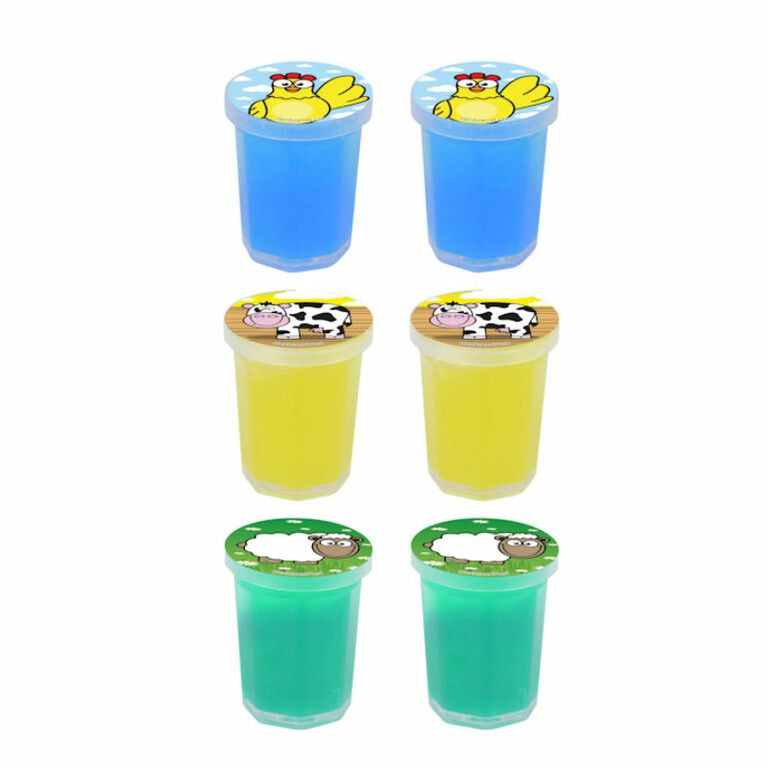 Leuke kleine Boerderij slijm potjes. Wordt geleverd in Mix soorten. Afmetingen: 3 x 3 x 3.8 Cm