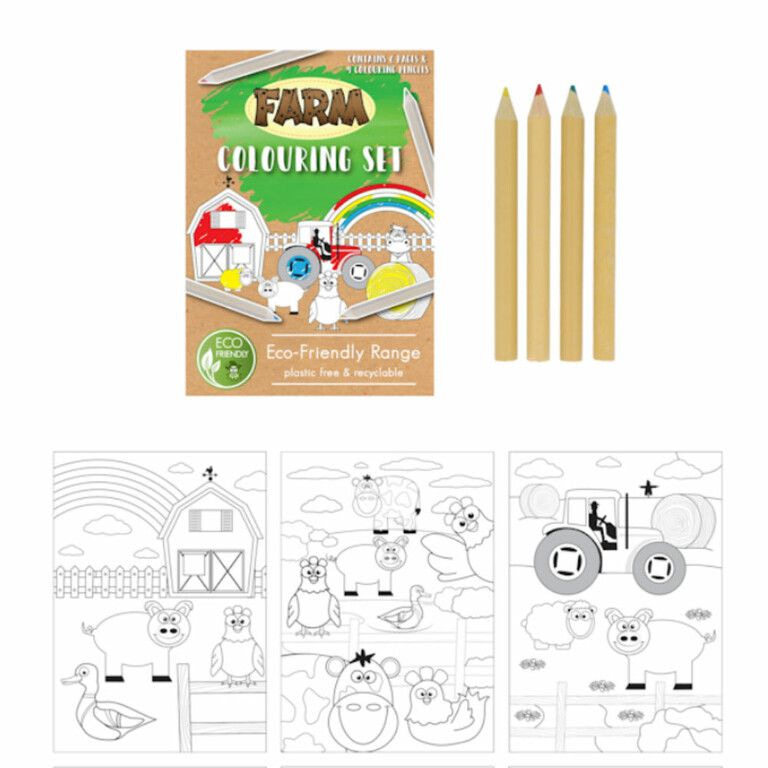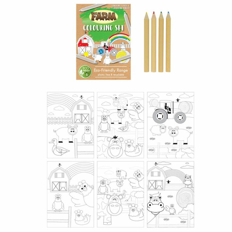 Leuke ECO FRIENDLY - Boerderij Tekenset, bestaande uit: 4x Kleurpotloden en 6x Kleurplaten in het Thema: Boerderij.