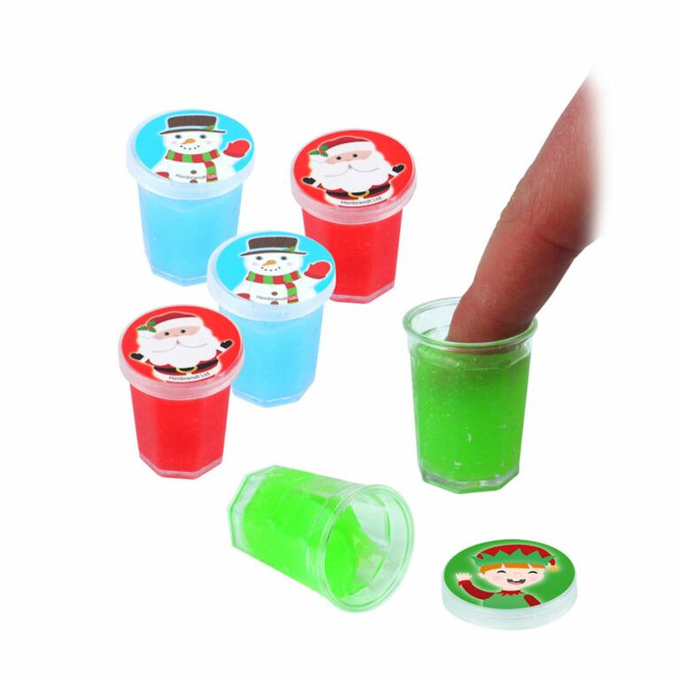 Leuke kleine Kerstmis slijm potjes. Wordt geleverd in Mix soorten. Afmetingen: 3 x 3 x 3.8 Cm