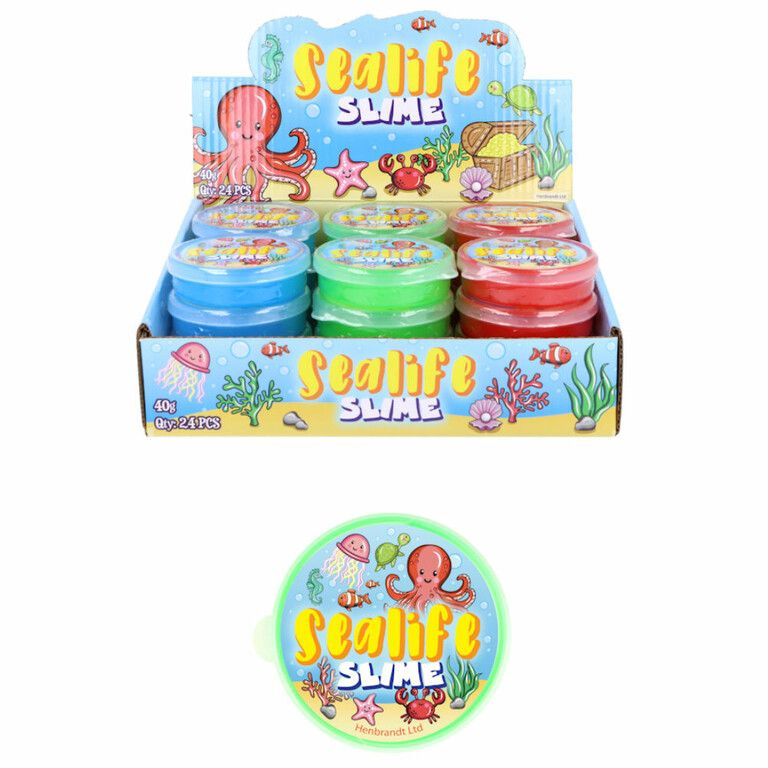 Leuke Zeedieren Sea Life slijm. Welk kind vindt deze vieze slijm nu niet leuk om mee te spelen ? Worden geleverd in een mooie display.