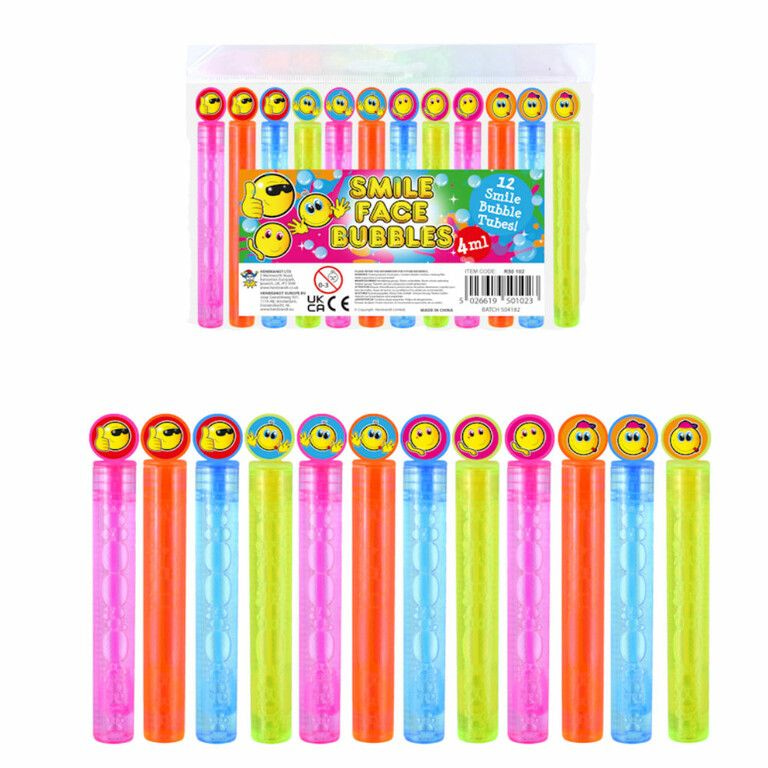 Leuke gekleurde mini bellenblaas staven, Model: Smiley. Worden mix kleuren geleverd.