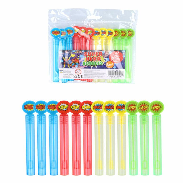 Leuke gekleurde mini bellenblaas staven, Model: Super Helden. Worden mix kleuren geleverd.