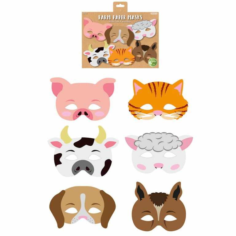 ECO FRIENDLY - BOERDERIJ DIEREN PAPIEREN MASKERS (1 Verpakking a 12st.)