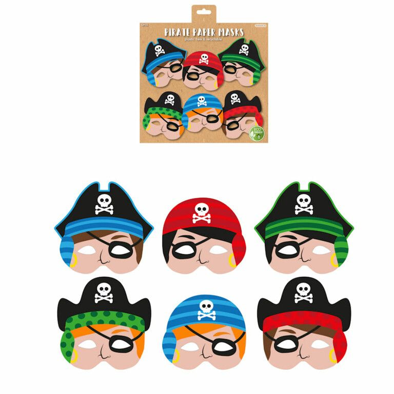 ECO FRIENDLY - PIRATEN PAPIEREN MASKERS (1 Verpakking a 12st.)