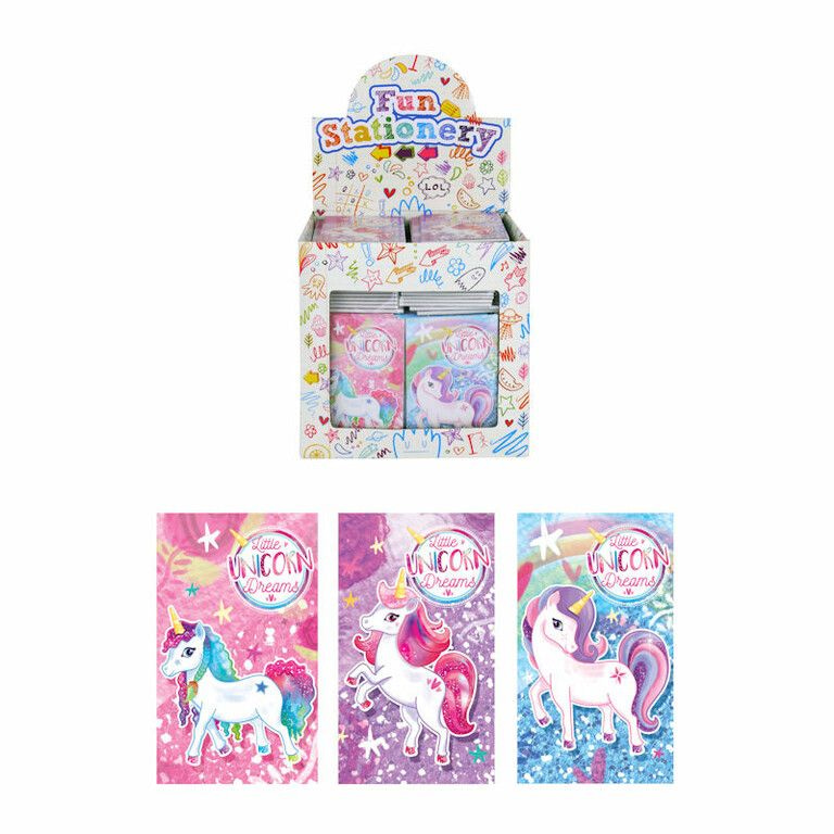 Cute little notepads/drawing books featuring unicorn images. Comes in a mix of colors and presented in a beautiful display.