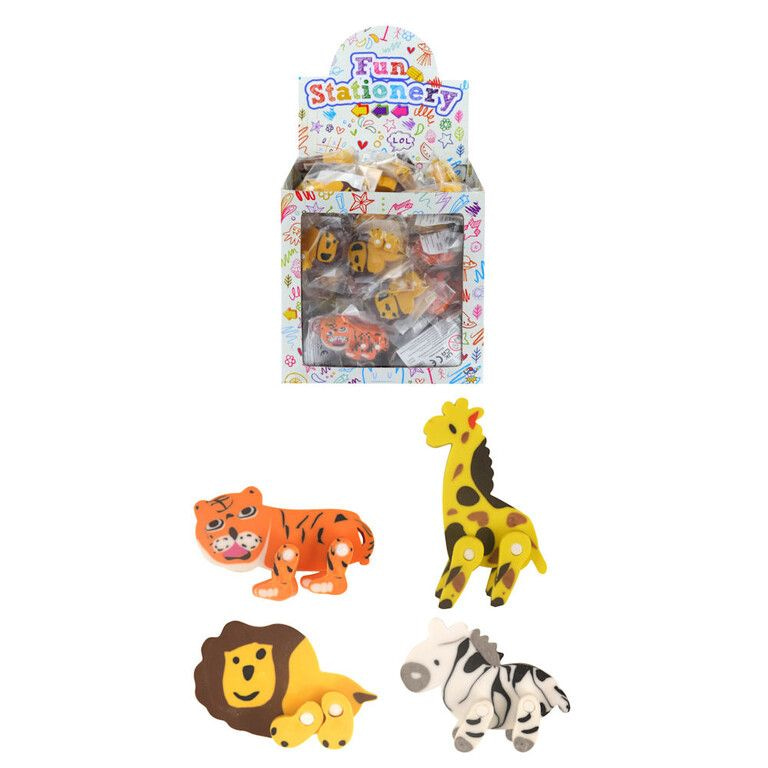 JUNGLE ANIMALS ERASERS IN DISPLAY (84pcs.)