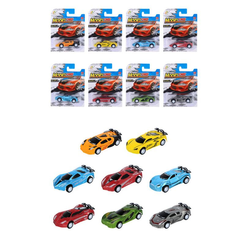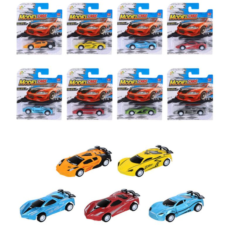PULL BACK SPORT CARS ON CARD - MIX COLORS (12pcs.)