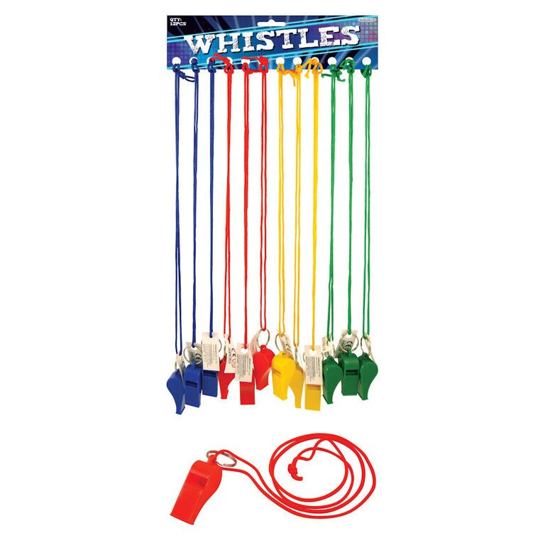 MIX COLORED WHISTLES WITH CORD (12pcs.)