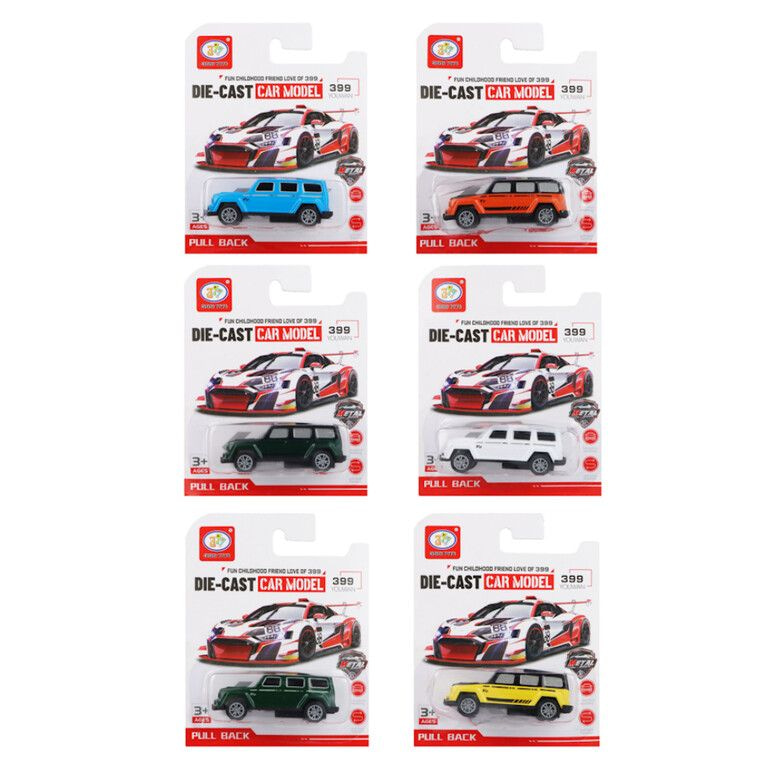 Nice Cool Pull Back 4x4 Cars, packed on a beautiful card of: 11 x 3 x 4 cm.