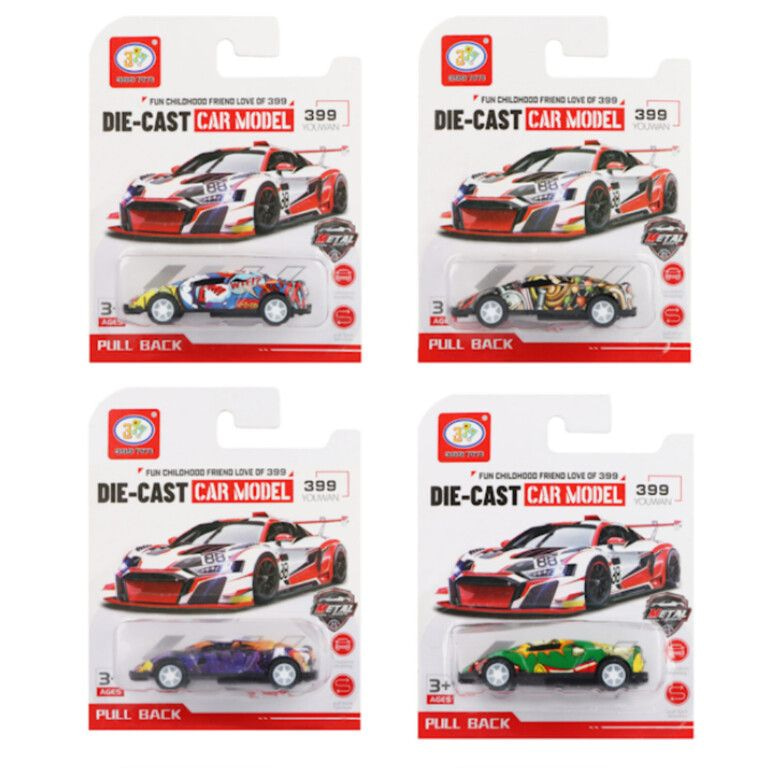 Nice Cool Pull Back Graffiti Cars, packed on a beautiful card of: 11 x 3 x 4 cm.
