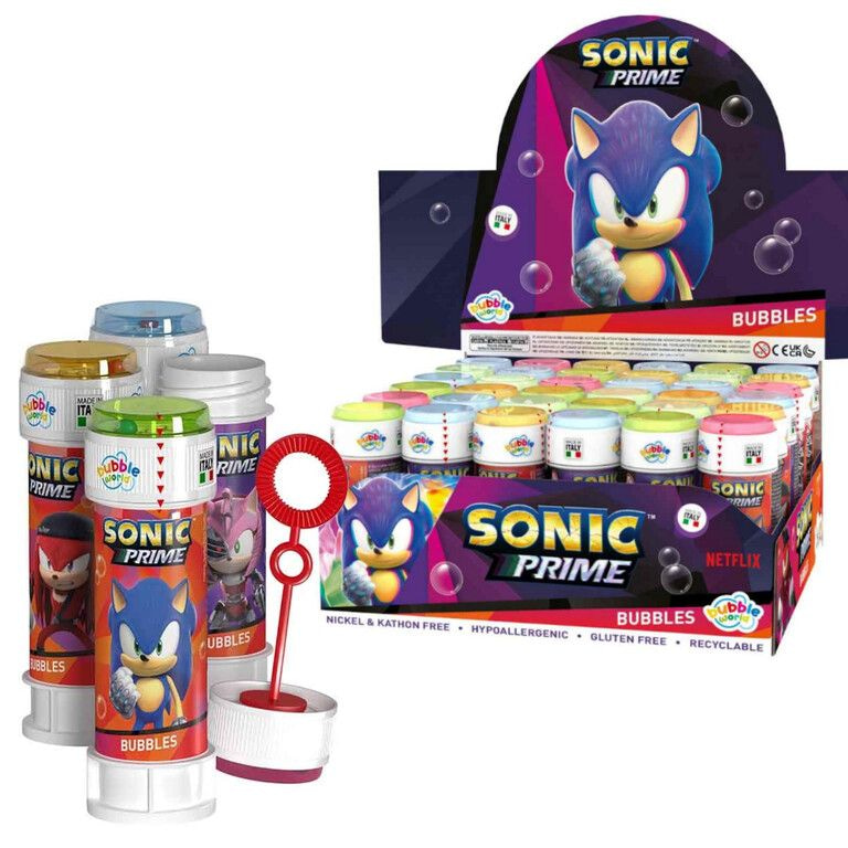 SONIC Bubble Blower, 60 ML. With a patience game on the top. Packed in a beautiful Sonic display.