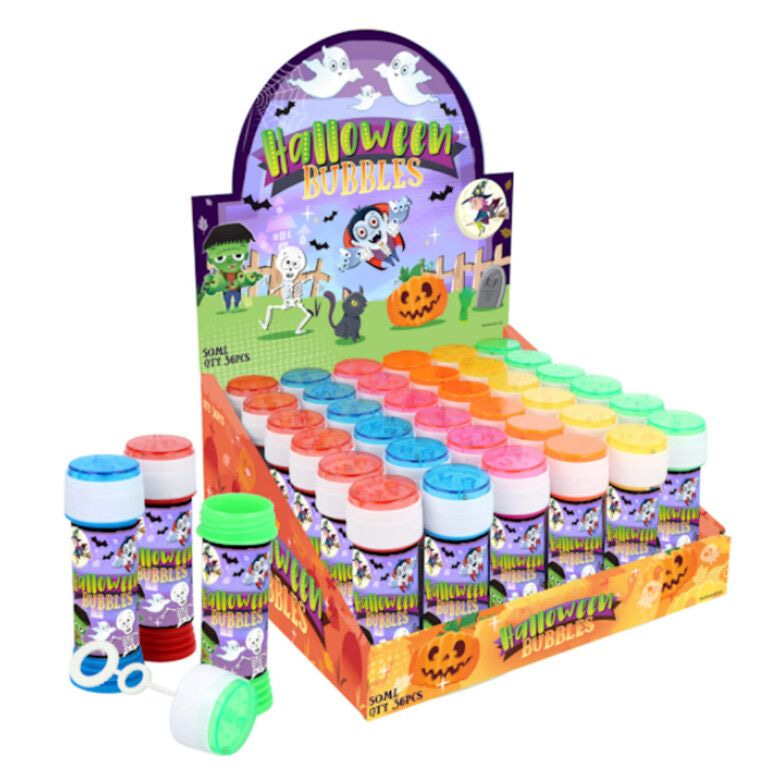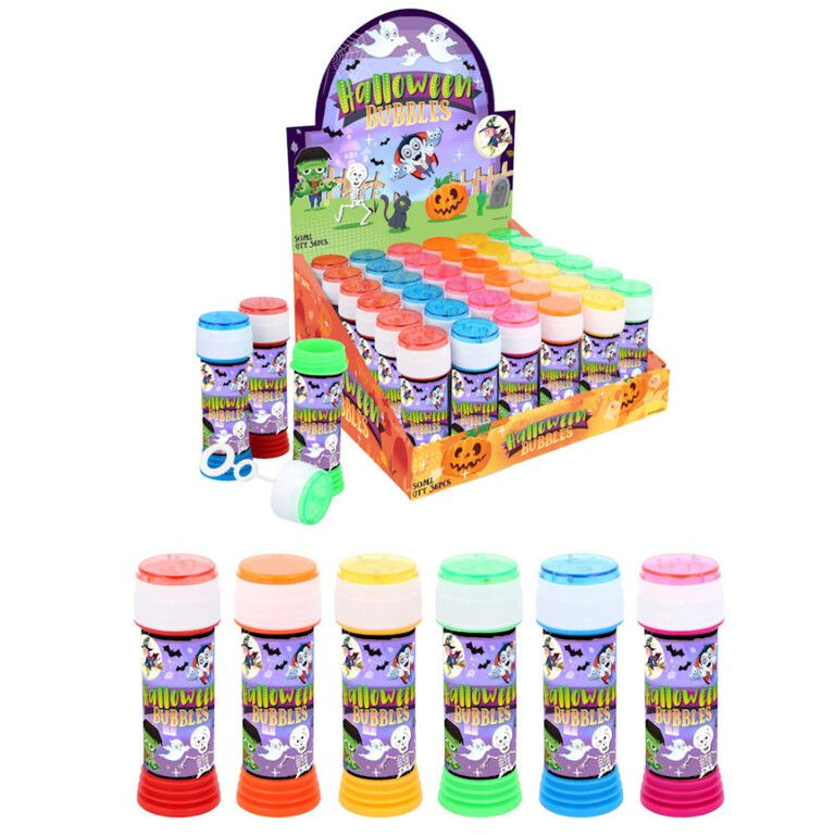 Halloween Bubble Blower, 50 ml. With a patience game on the top. Packaged in a beautiful display.