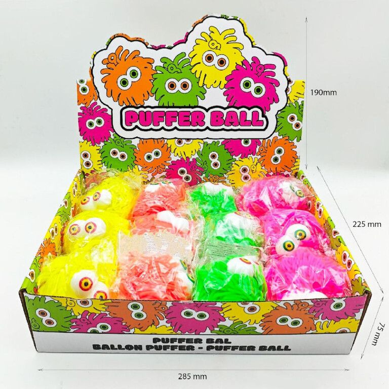 LG8387 - PUFFER BALL WITH EYES - 10CM - IN DISPLAY (12pcs.)