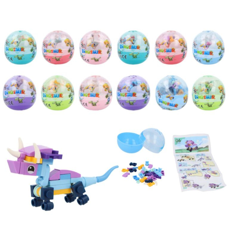 T65454 - BRICKS BUILDING BLOCKS DINOSAUR IN CAPSULE AND DISPENCER (12pcs.)