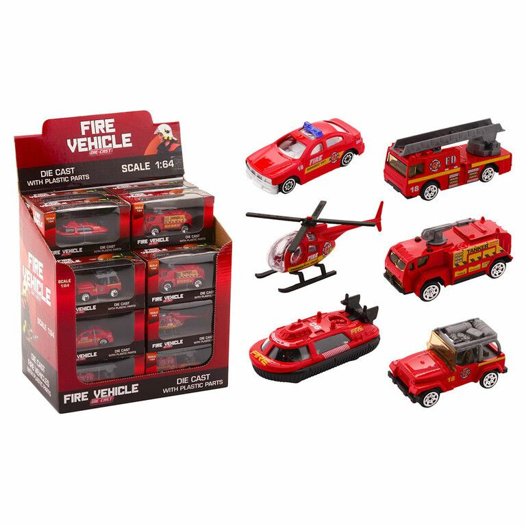 DIE CAST - MIX FIRE DEPARTMENT VEHICLES - SCALE: 1:64 - IN DISPLAY (24 pcs.)