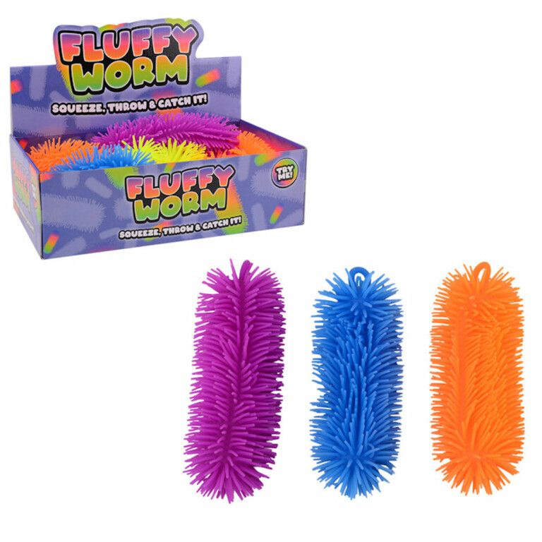 Grote lange Fluffy Worm van 22 Cm. Lang. Wordt in Mix kleuren geleverd in een display.