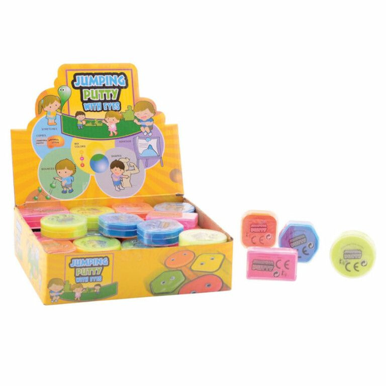 Leuke Jumping Putty, voorzien van Oogjes. Wordt in Mix kleuren geleverd in een Display.