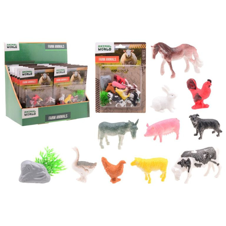 Animal World Farm Animals Playset - 12 Pieces on Card